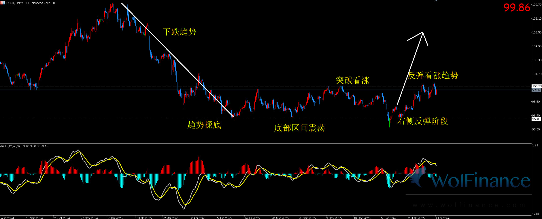 图表显示美指维持高位震荡偏强格局,受美联储鹰派预期与经济韧性支撑,美指站稳 100.3 关口,对以美元计价的白银形成持续计价压制,限制银价反弹空间。